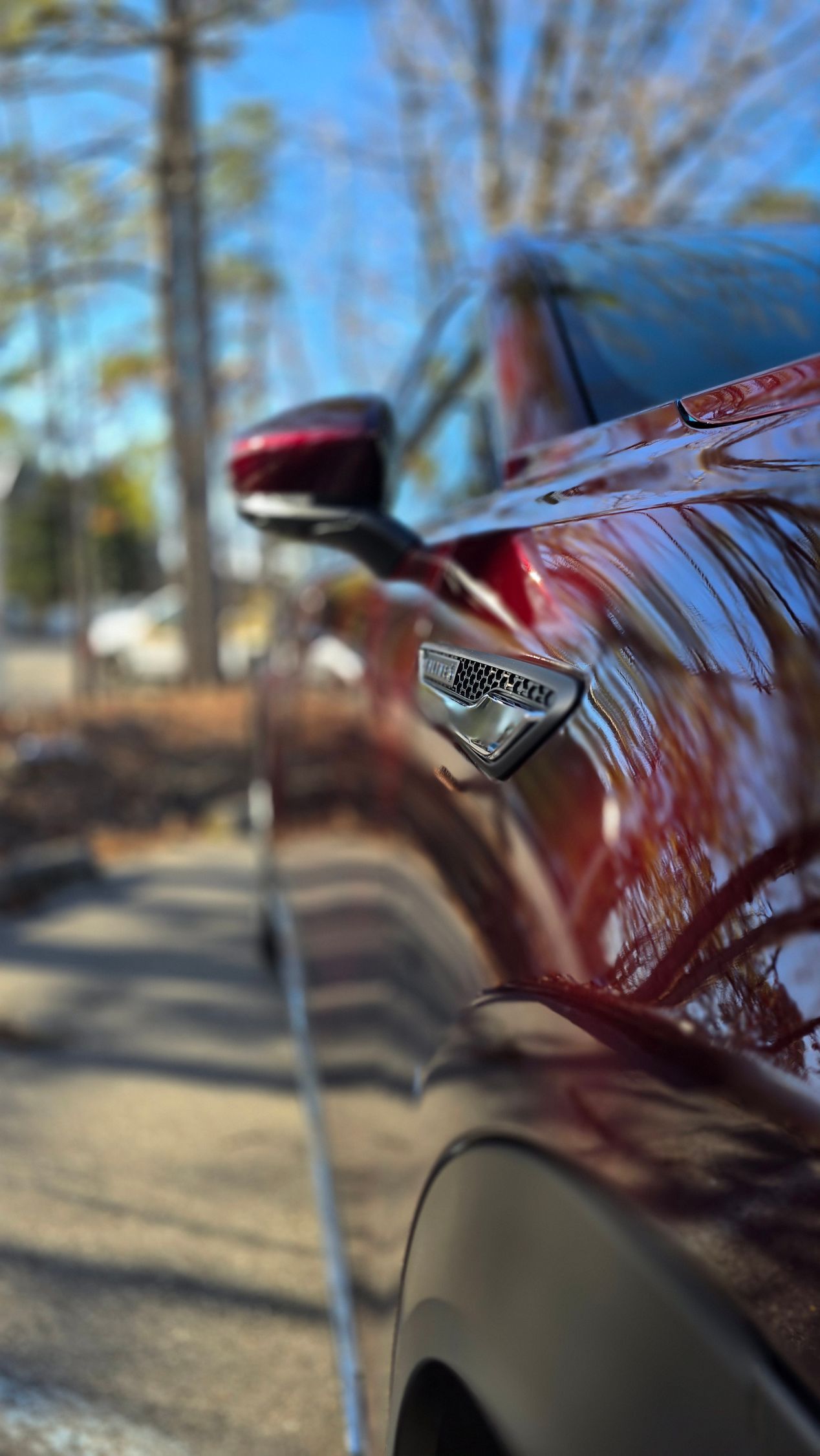 On a dark, complex color like Artisan Red, even the smallest impact can stand out.